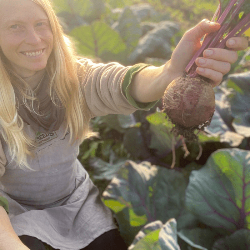 HEIRLOOM Lutz Green Leaf Beet is the best of both worlds with massive chard-like greens and delectable red roots! Her roots are slightly more tapered than classic beets, becoming massive before becoming pithy and Lutz has exceptional winter storage, as well. At Fruition, we sow Lutz all season long from early spring to late summer, with the final succession being the one we store all winter long.